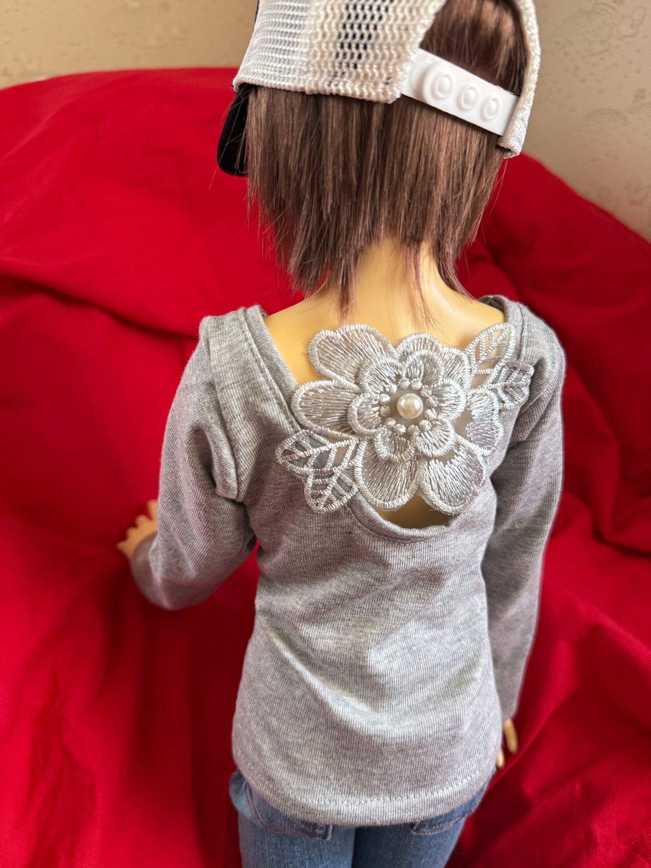 背中を大きくあけてお花のレースモチーフをデザインし、エロカワに仕上げました!
