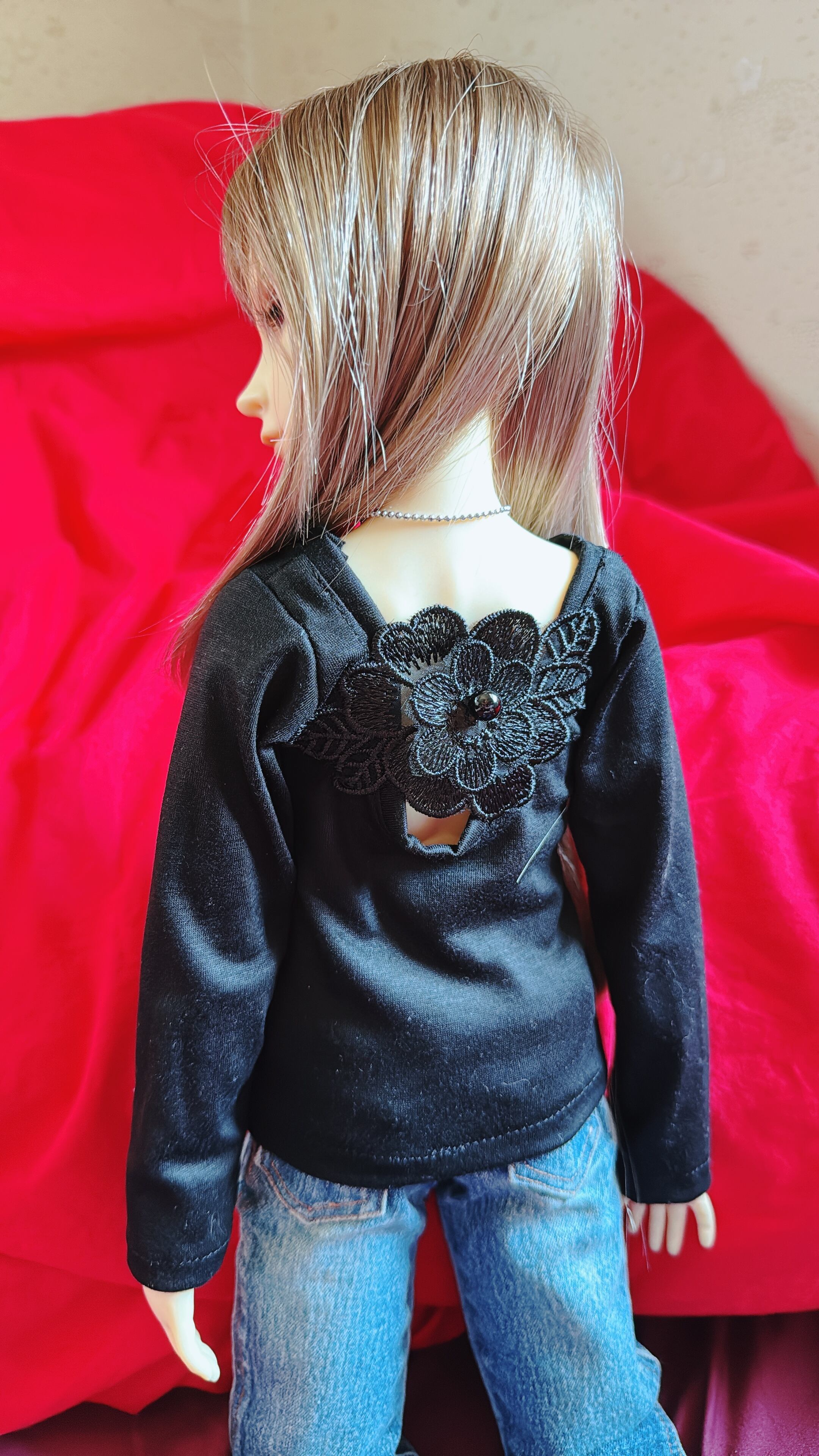 背中を大きくあけてお花のレースモチーフをデザインし、エロカワに仕上げました!