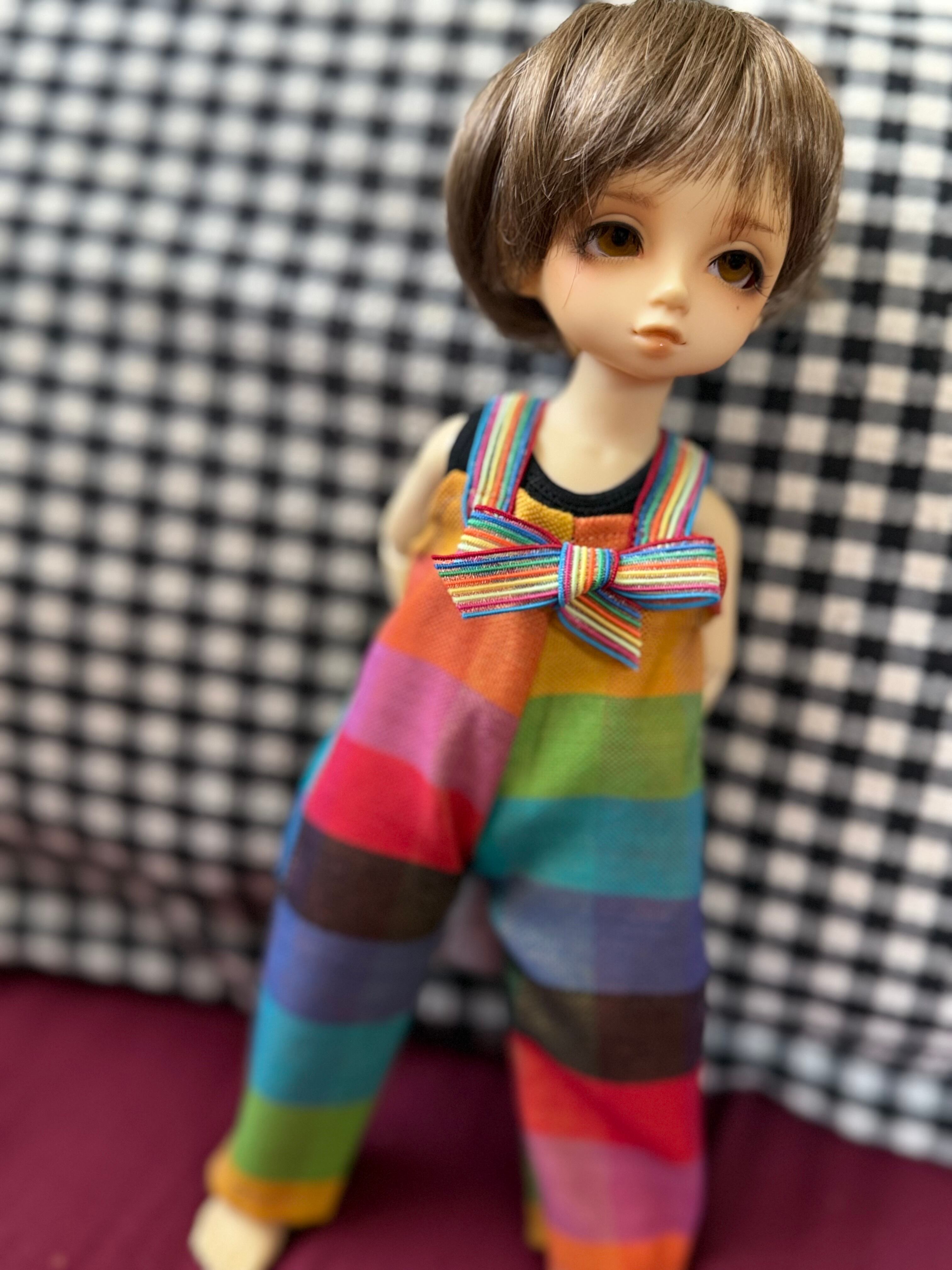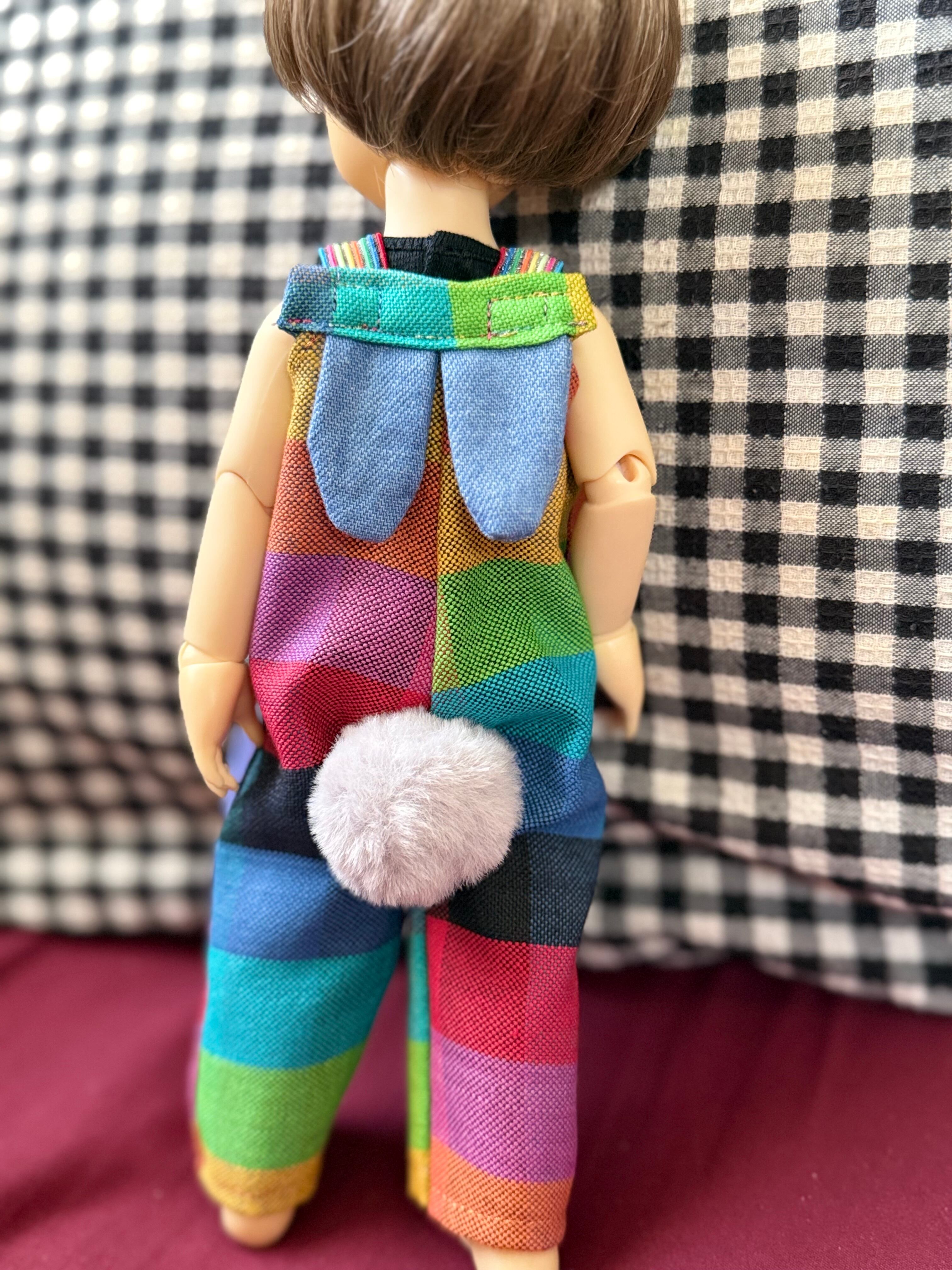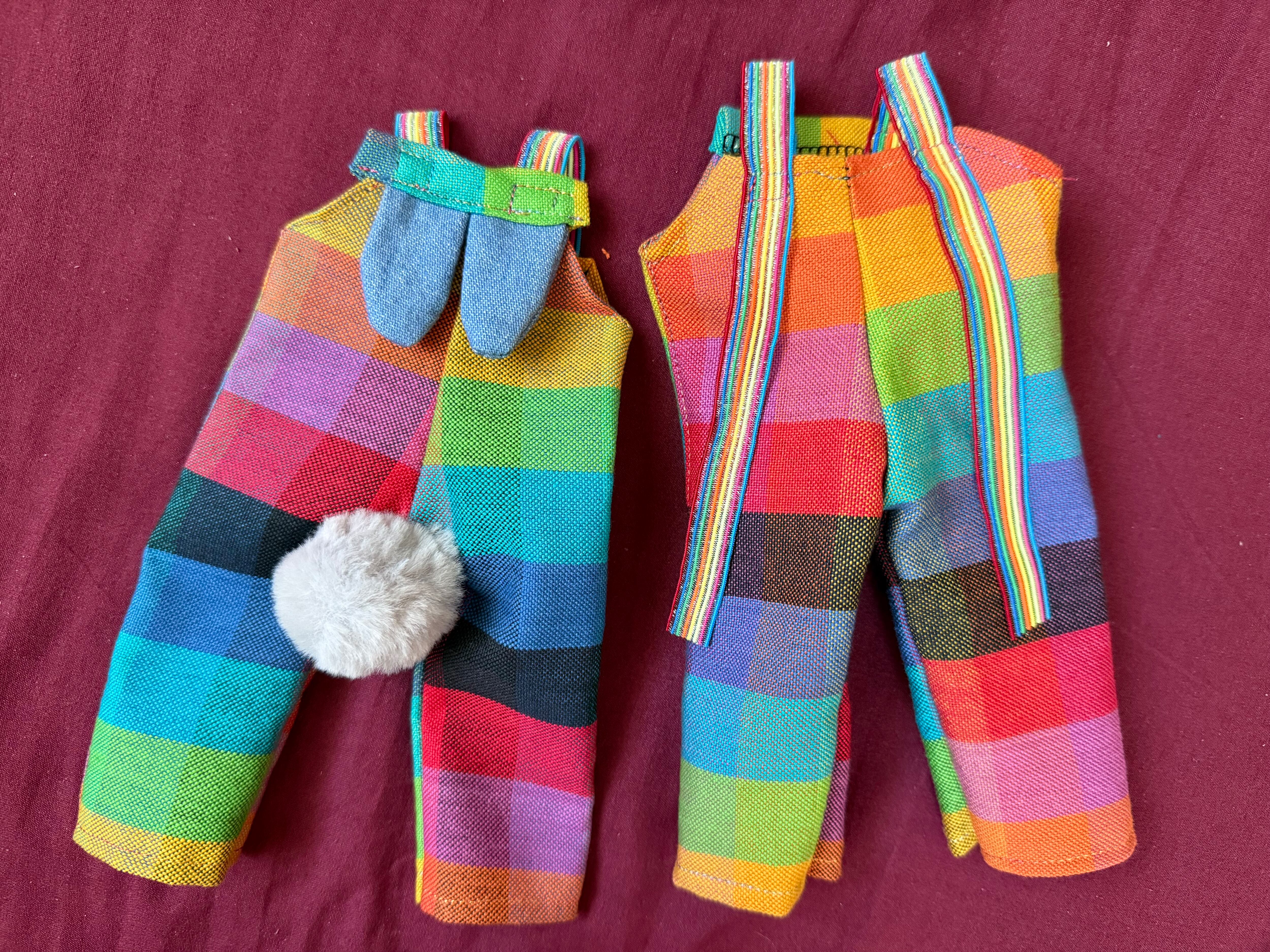 カラフルな麻っぽい生地でサロペットを作りました!
