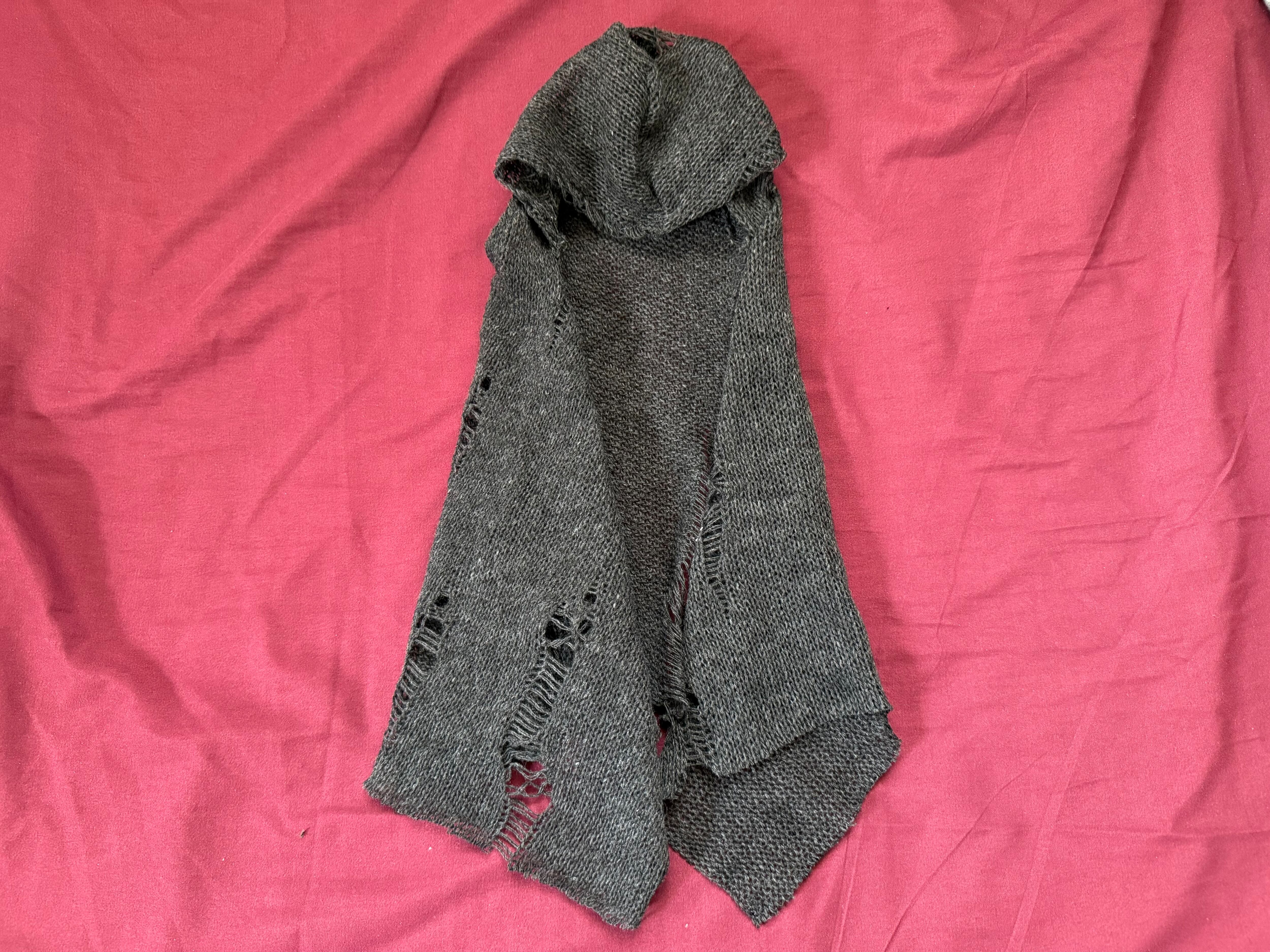 ダメージ加工の入ったダークグレーのニットで