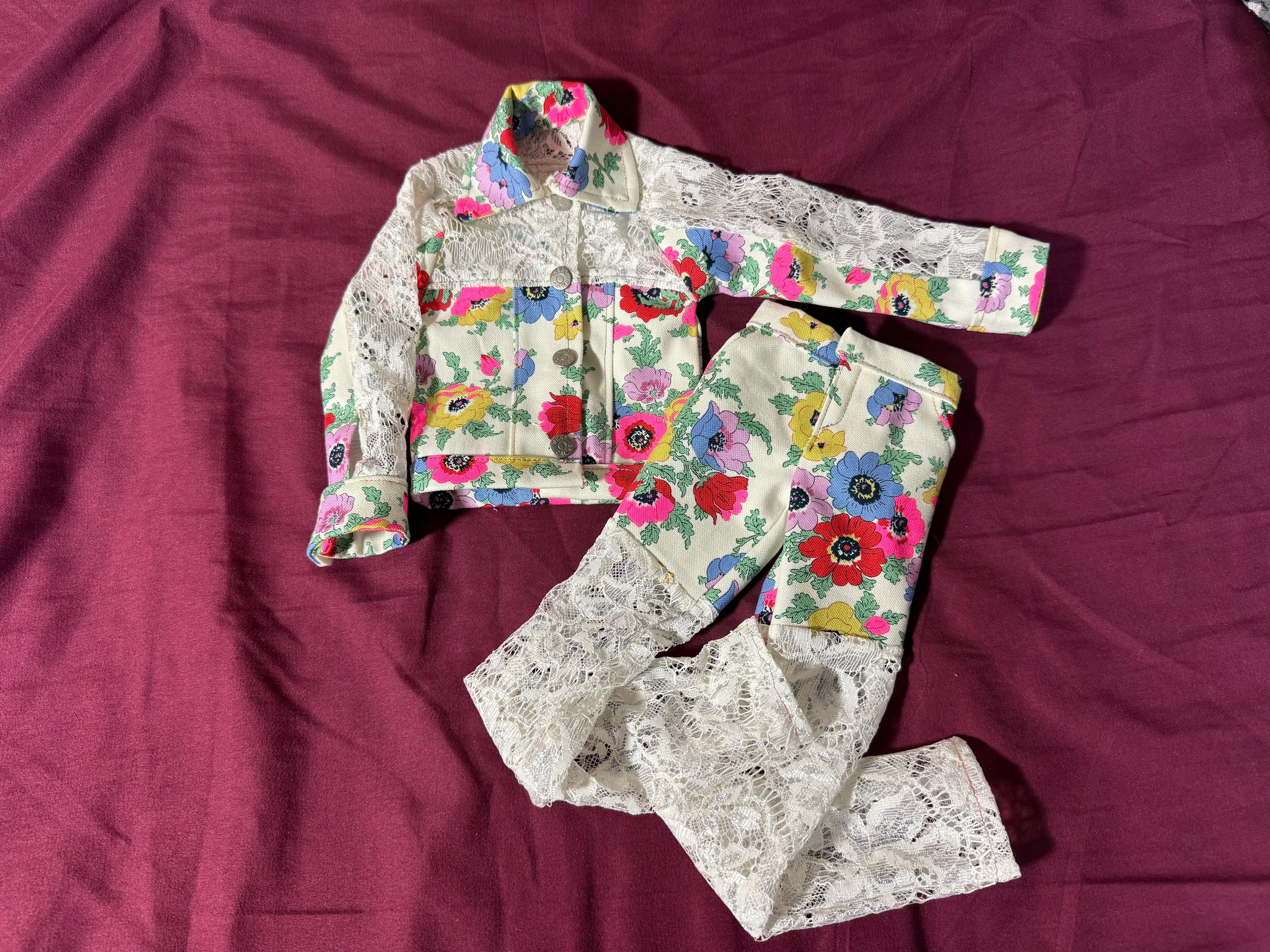 蛍光色の入ったお花生地とレースを組み合わせて、