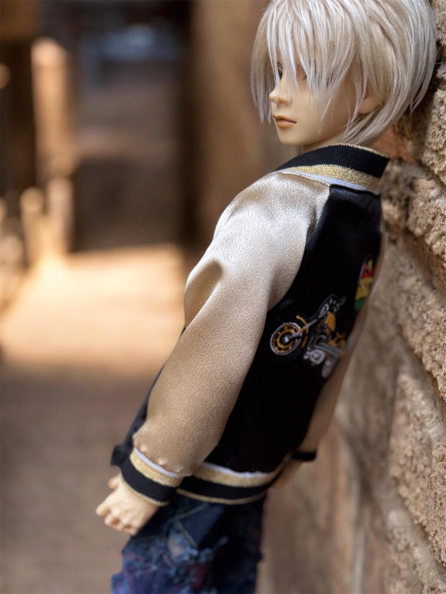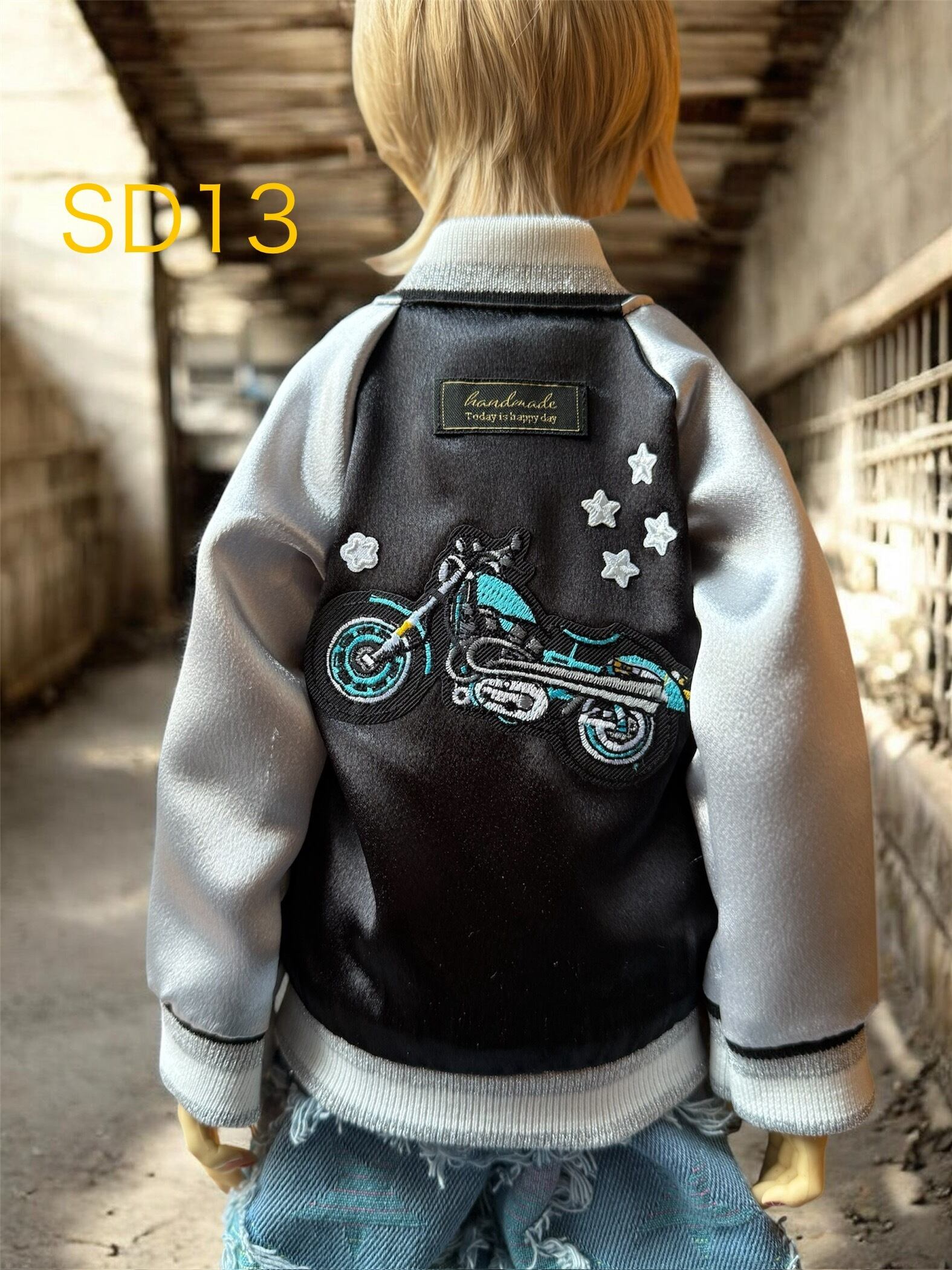 バックのデザインは生地の色に合わせたバイクのワッペンをメインに他のワッペンとデザインしています。